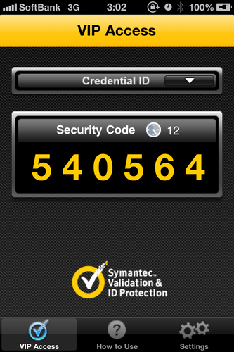 スマートフォンでダウンロードしたVIP Accessから30秒毎に変わるパスワード(セキュリティコード)を入力するとログイン出来る様になります。