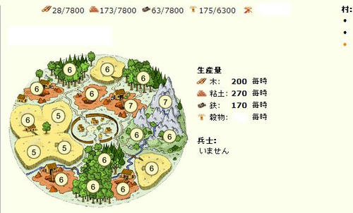 製粉所Lv5 穀倉Lv12 馬舎Lv10 倉庫Lv13 防具工場Lv5 学院Lv15