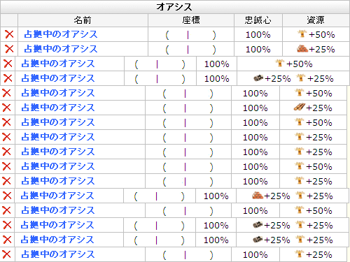 僻地村の近所に村がポツポツと出来ている為、出来る限りオアシスの占領を行いました