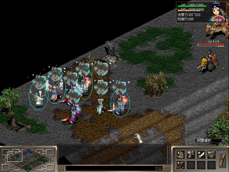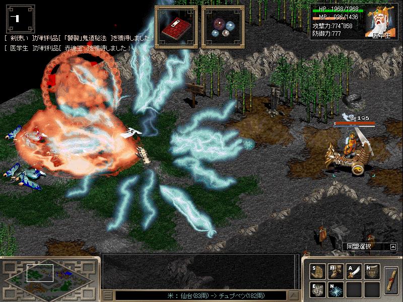 3.後は梵天&憤怒&雷功でチャウ神との戦いです、梵天でチャウ神を叩き、憤怒は生死決で梵天のダメージを軽減、雷功で梵天と憤怒のHPを回復させます、チャウ神は攻撃スピードが速いですので前もって(地天雷を出している最中)雷功のMPを回復させておきます、