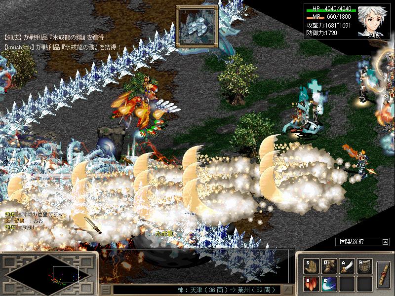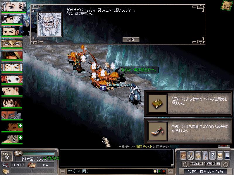 偶然入口にいた王さんと健さんと後ほどやって来たガハクの4人で旅団をし、ゲロ爺さんの最初の任務である氷戒龍の鱗5枚を4人分手に入れました