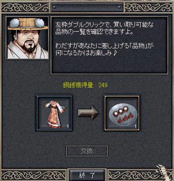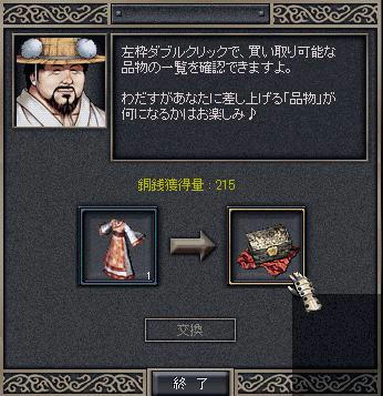 韓国巨商に比べてもらえる銅銭(ポイント)がかなり少ない、秘薬等は当たらず貰えるものが殆ど回復のみ…