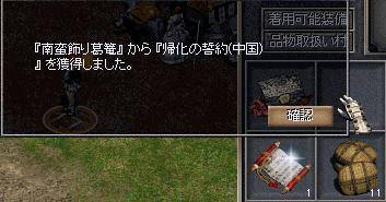 出た物は、中国帰化、朝鮮帰化、水龍王の兜2つ、悟りの経典2つ、百鬼夜行【ひよこ】5個セット。