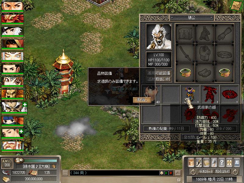 武術家の鎧を猿公に装備しようとしたら…求道師が装備できますと表示が