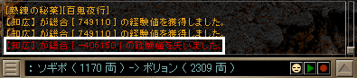 戦闘の時に一般チャットで獲得経験値を確認した時…
