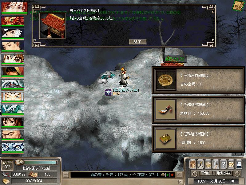 親衛隊退治、呪霊巫女退治(頭巾を手に入れろと記載されてましたが違う様です)、呪氷精霊退治を終わらせると古の金貨を1枚貰えます…が景品と景品に必要な金貨の個数があまりにも韓国巨商と違います
