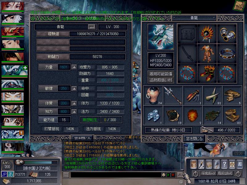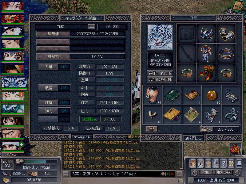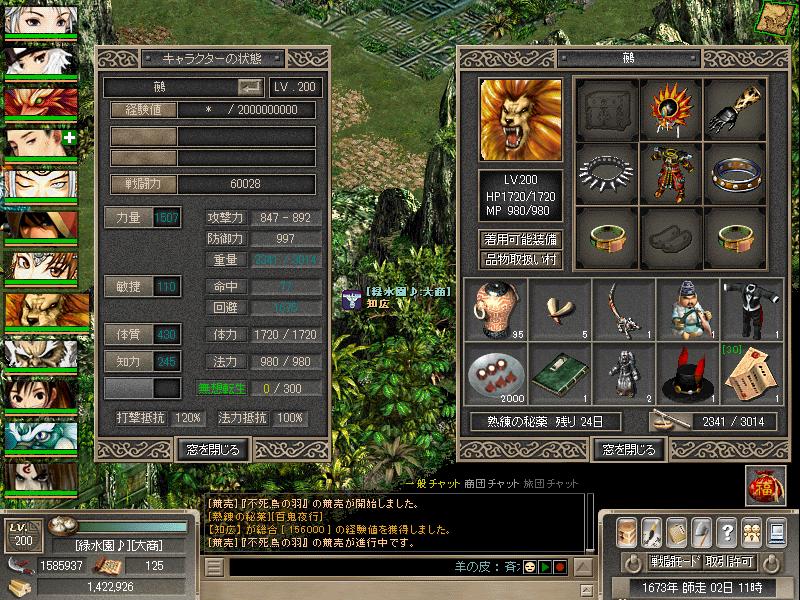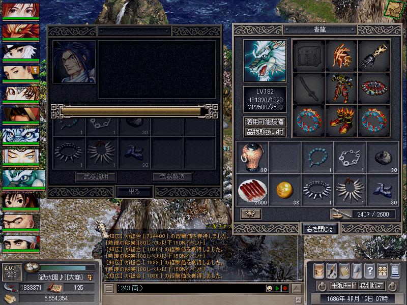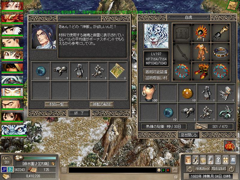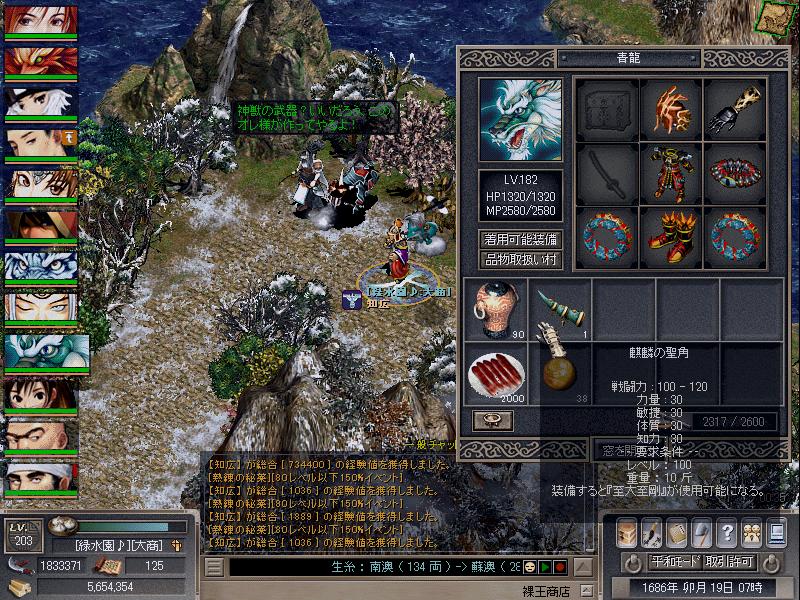 この当たりで朱雀の御霊Lv200を封印の書3つ,霊獣魂魄Lv100 3種類,朱雀の封魂石10個と交換して下さる方がおり交換頂きました。好条件でお取り引きして下さった方には感謝致しております。