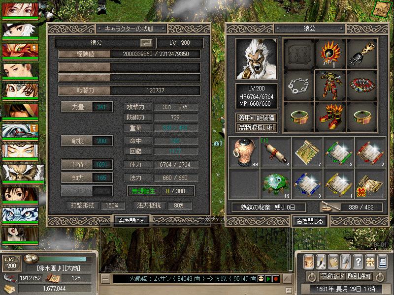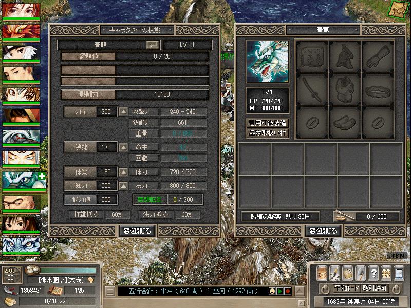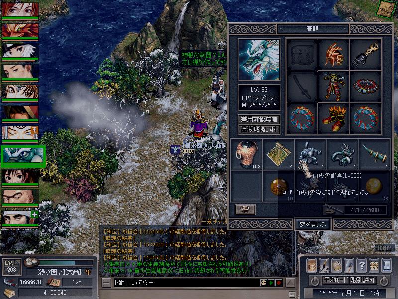 先ずは霊獣の札を急いで必要分作り青龍を雇用、これは200ボーナス麒麟をつくる為の青龍です。