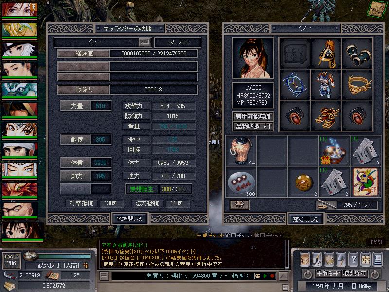 本日クノ一がレベル200になり経験値も20億を超えました!!
