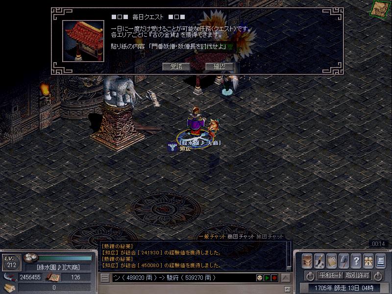 通常クエストの最初は門番妖僧がドロップする祈祷棒の欠片を20本集め。