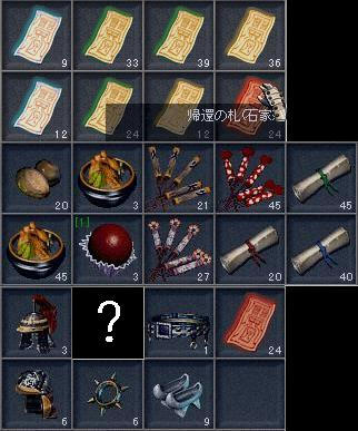 ヤシの実20個,半鶏湯45個,参鶏湯3個,天下壮士3個,花火「黄」21個,花火「華」27個,花火「愛」45個,経験値の長布(下級)20枚,経験値の長布(中級)45枚,経験値の長布(上級)40枚