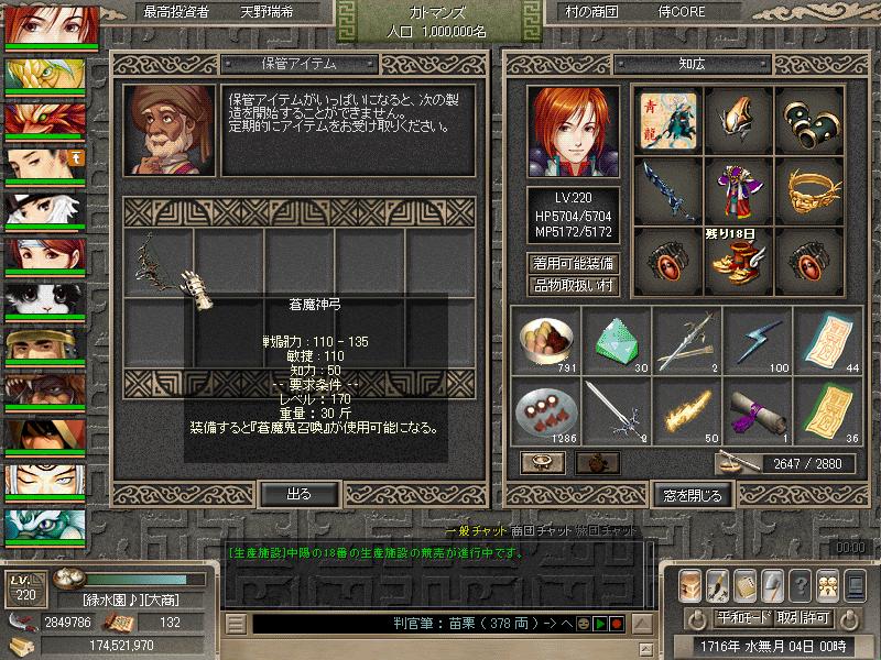 北インド実装後、蒼魔神弓を製造し昨日完成しました 対空戦闘での盾になれば良いと思ってたのですが、通常攻撃必中なのには感激しました 一撃必殺も割と出してくれるので攻撃にも期待出来そうです そして少しの間、魔神チャウとの戦闘 ドロップは7連発で光の魔石 弓を手に入れたのでこれからは対空ボスにもガンガン攻めて行きたいと思います