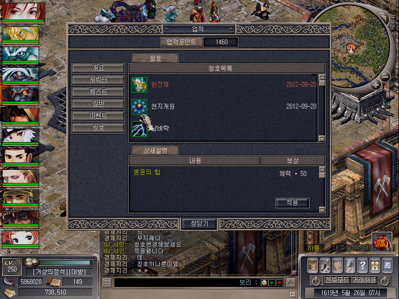 韓国巨商でv.22500のアップがあり称号やPvPシステムが実装されました。