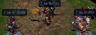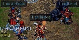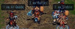左から邪霊、修羅、九曜星装備をした男3人です 手持ちの武器も良い物持ってらっしゃいます