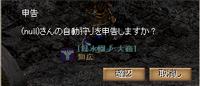 自動狩りの申告をしたのですが名前が出ずnull(何もない)と表示されてしまいます。