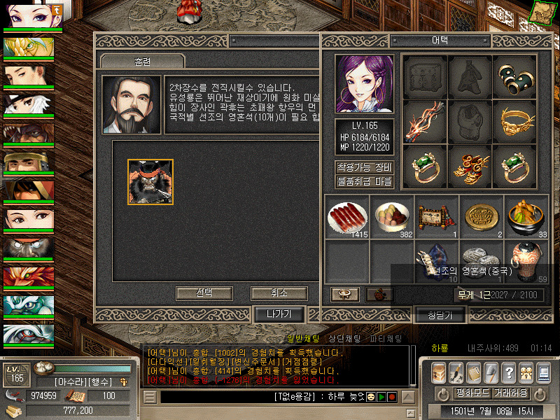 NPCの道士パクお爺さんが、中国の武将の豪槍家を先祖の魂石と言うアイテムを使って戦騎将にしてくれる様です。