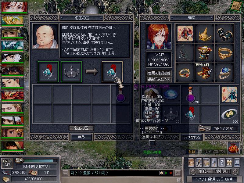 材料は壊れてしまいますが、装備品は壊れないので練成に比べればリスクが低いですが、成功時のオーラと効果音を聴くとテンションが上がります