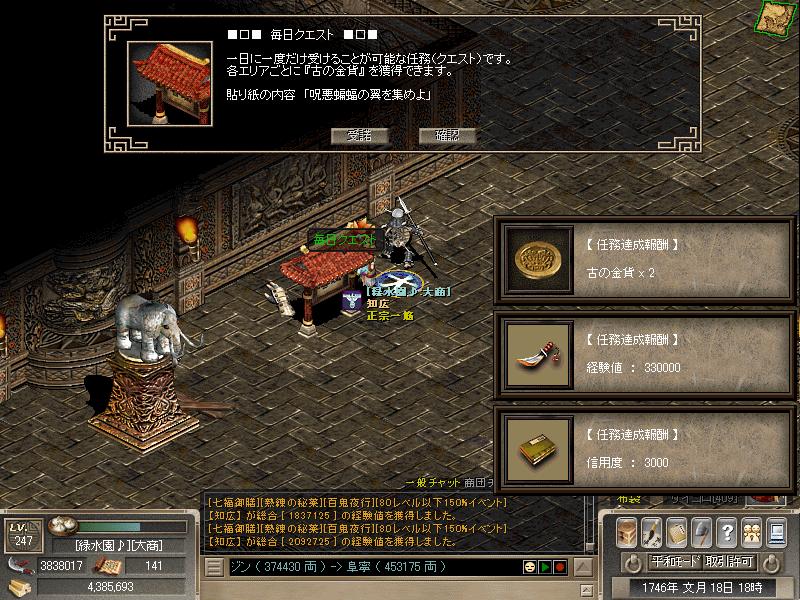 アップ後、ジュムラ石窟の毎日クエストの3番目の任務で必要なアイテムが変わってます…が!