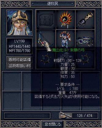 遊牧が元々持っていたノーマルの朱蒙弓をお知り合いさんのhi-liteさんが練成ギャンブルします