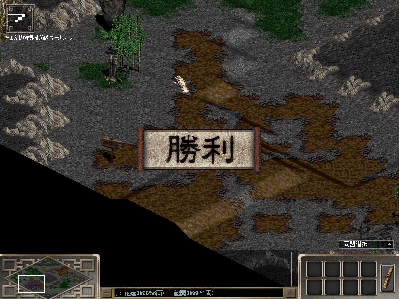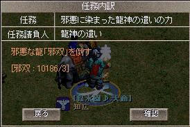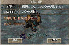 土曜日の話しとなります 目標だった邪双1万体退治、 達成出来ましたー また邪双退治最速記録を更新しました(敵が全て消えてしまってますorz)、 左上の数字が8の所で勝利の文字が出る様にするのが目標です 土曜日までの邪双撃破数は以下の通りとなりました、 黄老忠臣がカンストするまで頑張ります
