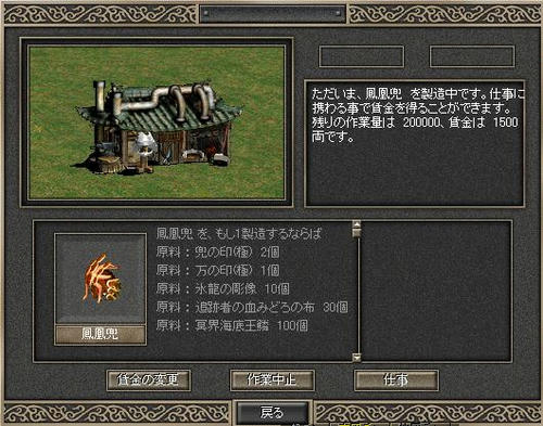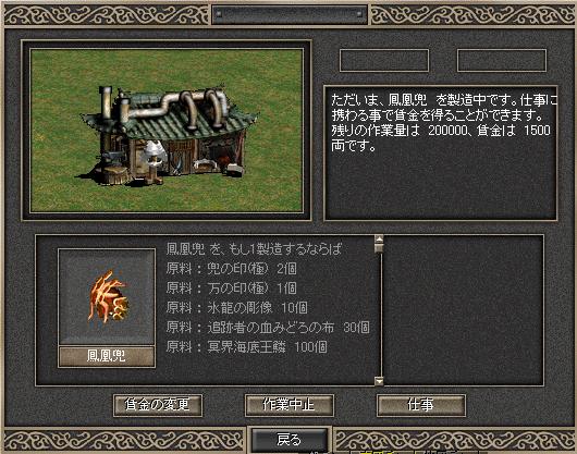 材料をせっせと集め、他の方々にもかなり協力してもらった末にやっと… 鳳凰兜をセット出来ました 完成は15日前後となりそうです、完成がとても楽しみです(^人^) あとは鳳凰鎧と灼熱剣を目指しますこれも材料収集におもいっきり時間が掛かりそうですorz イガクの育成は以下の様になりました、 だんだん次のレベルまでの経験値が多くなってきました 遊牧が夢想し終えて戦騎将になり氷洞に復帰するまでにLv195位にしたいなと思ってます
