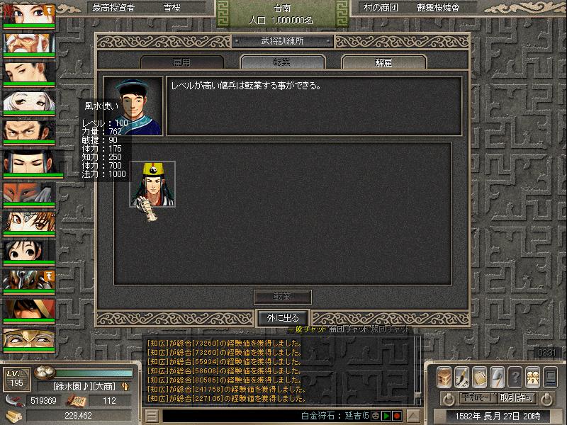 導師をLv100にし、戦騎将にしました、 今までの夢想で一番楽に進める事が出来ました 残るは憤怒のみとなりました、クエを粗方済ませた後中国に帰化しようと思います 今回のアップで戦騎将のスキルの調整の中に韓国巨商のアップで1.6400に行われた雷公のスキルのディレイ時間が短縮も今回のアップに含まれていそうです、 恐らく休戦簿と回復の時、無駄に発動までの時間が長い時がありますがそれの短縮をしたのではと思ってます(自己解釈ですのでもしかしたら間違いがあるかも知れません)、 アップが待ち遠しいです