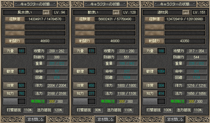 今日はネタ無しですorz 毎度三人組の育成は↓ 忠臣は旧カンストLvを超えました、忠臣に装備していた指輪を取替え法力がかなり増えました