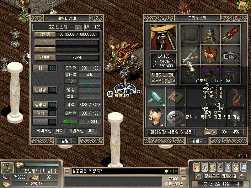 今日は牙は出ずでした、その代わり錆びた斬首の斧が5個ドロップと異常にドロップしました、 あと狩りに集中するばかりお知り合いの方が一緒の狩場に来ても気が付かなくスミマセンorz 憤怒の成長は以下の様になりました、 力量上げ上げ↑↑ ~おまけ~ <四聖獣>轟天剣良いですね、 力量と体質素敵過ぎます