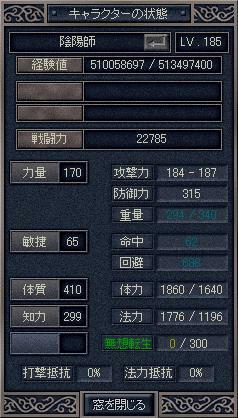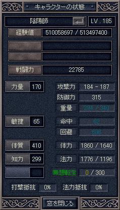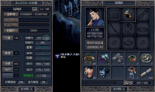 上のssは装備を全て外した状態の陰陽師です、その時の攻撃力が184-187です、例えば最小攻撃力が+4以上の補正の付いた防具を装備すると攻撃力が188-187になり最小攻撃力が最大攻撃力を上回ってしまいおかしくなってしまうのかと思い試してみました、