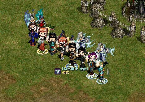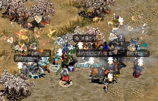 団内イベントをひっそりとやりました 主催は団員さんのGIZUMOさん♪ 最初のゲームは制限時間内に弓手山賊、雪蜥蜴がドロップする古い博多人形を取るゲームでした、 景品は無影風、韋駄天、気化各種、水龍王の鎧、大黒天の靴等でした♪ ↑団員さんのyasurinnさんと木蓮さんが誕生日を向かえ皆でお祝い 二次会はクイズ大会で強制的に自分が問題を出す事に、オマケに… 呪いのリンゴ帽&メイド服(後々間違えて時間制限の指輪も装備)の強制装備orz 3時間半程のイベントでした、 最後まで残った方と記念撮影♪ 皆さんお疲れ様でしたー