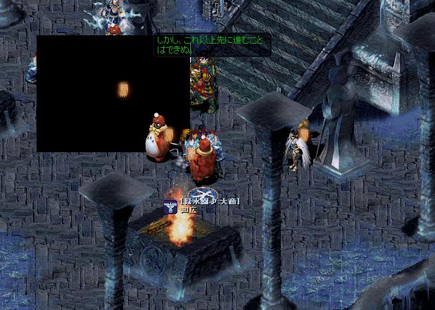 氷龍での狩りを休憩しヒョンウテで経験値稼ぎをしました 戦闘が終わって外に出てきたら変な黒い壁の様な物が出てました …戦闘ばかりでネタが尽きてますorz 経験値二倍楽しいですがアップがとても待ち遠しいです