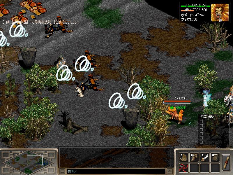 ↑敵の中心部分に獅子穿孔を打ち込み瞬殺します(たまに残りが出るので吉祥天の戦風で倒します)、
