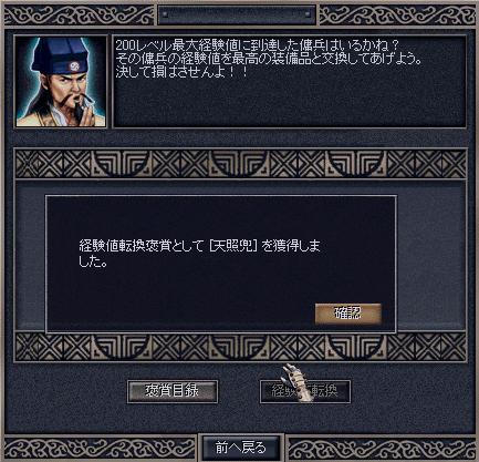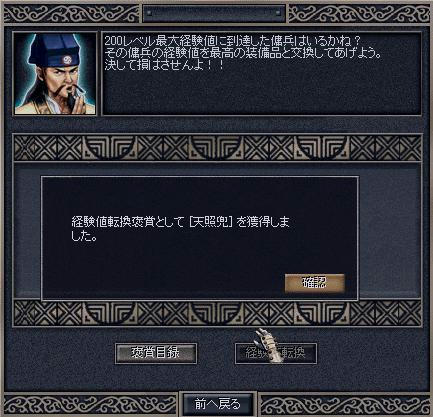 今回はドロップするのに1時間半程掛かりました 一入一赤魂玉、十一入目、 本日1個ドロップ、これまでの合計15個 そして九尾の狐がカンストしました、トドメはチャウ神で 分身のタコ殴りで倒せました それから楽しみの経験値転換へ今回は何が出るのか! 鎧…鎧…!! … また兜`;:゙;`;・(゚ε゚ ) 台湾親父サスガデスこれで天照兜の所持数5個になりました、貰えた兜は狐に装備させてあげました それと狐がカンストしたらやってみたい事があったのでやってみました 天照フルセット(指輪以外) パーティ全てに天照装備、夢ですがやってみたいものです