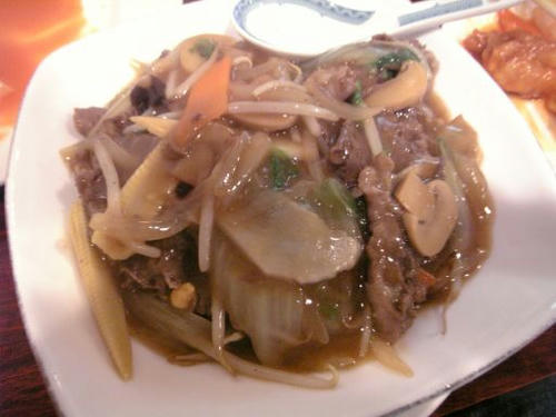 (画像を撮る前に左端に少し写っている酢豚は完食してしまいましたorz)牛肉のあんかけご飯