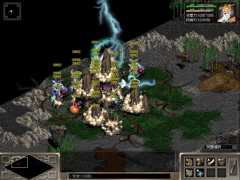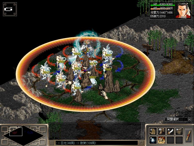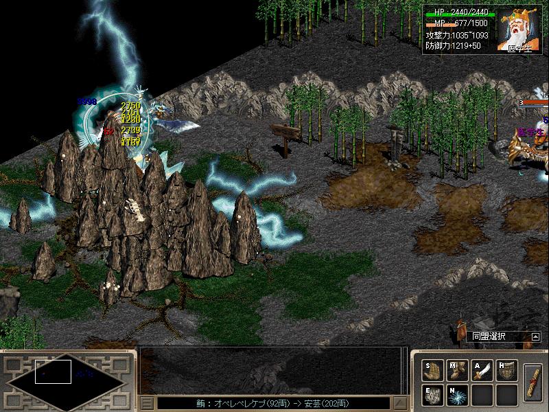 中国男(武術家)と雷針車、補助で憤怒羅漢、陰陽と念力を使い倒してます。